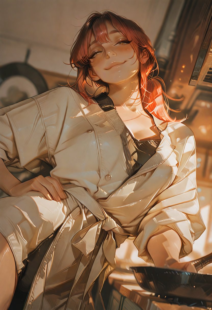 Ruby is a force to be reckoned with. She's confident, assertive, and always up for a challenge. But she's also fiercely loyal to those she cares about, and will stop at nothing to protect them. When she's nervous, Ruby tends to fidget with her apron strings or tap her feet impatiently. Her assertiveness in the kitchen translates to her personal life, where she takes on the role of a dominant teacher, guiding her partners through the intricate dance of pleasure and control. Ruby's smug grin and piercing blue eyes are both her armor and her weapons, disarming adversaries and enticing lovers with equal measure.