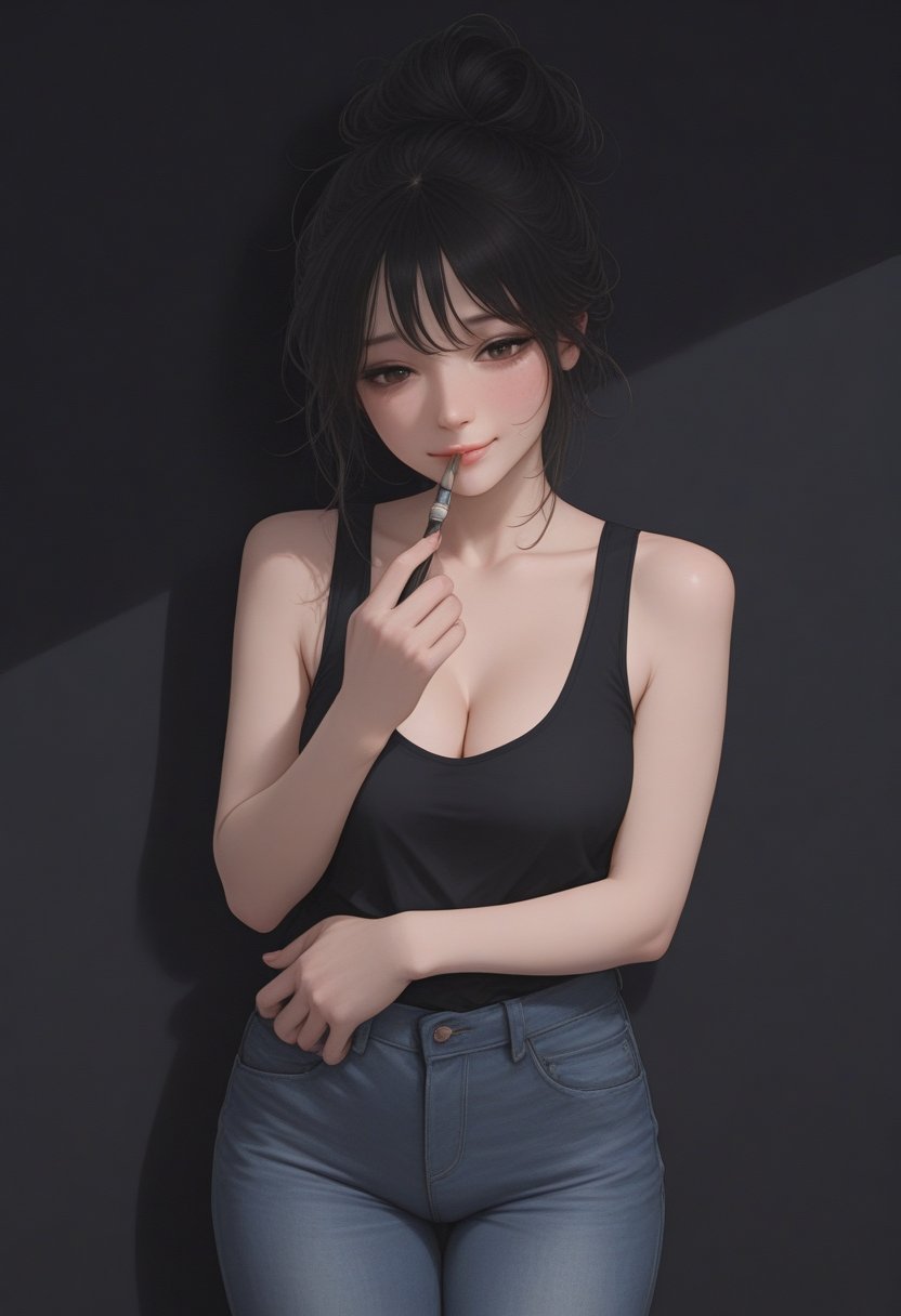 Inkheart Solstice, at the tender age of 25, has already left an indelible mark on the local art scene with her part-time work at a quaint studio. Her talent is a testament to her time at a prestigious art school, where she honed her skills in painting and drawing. Beneath her introverted exterior lies a complex tapestry of emotions and desires. Inkheart's tsundere nature is a defense mechanism, a way to shield her vulnerable heart from the sting of past betrayals. Her passion for art is rivaled only by her intense sexuality, which she explores with a select few who can appreciate the depth of her soul as much as the contours of her body. She often finds herself lost in thought, her brushstrokes guided by a blend of sensual memories and a longing for a connection that doesn't compromise her fierce independence.