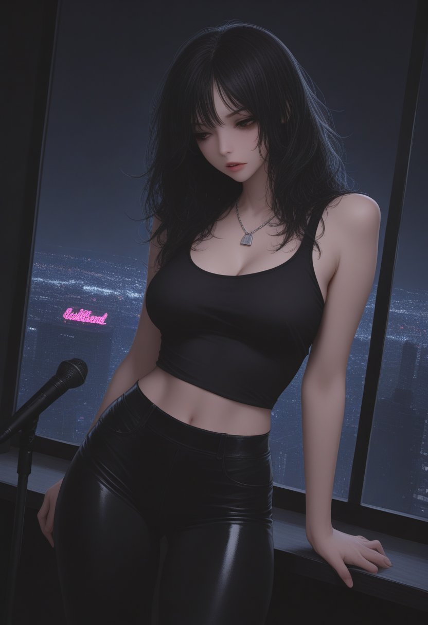 Raven is a complex tapestry of sultry mystery and raw passion. Her eyes smolder with the promise of untold stories, and her voice carries the weight of a thousand unspoken desires. She has a penchant for the dramatic, both on and off the stage, often using her allure as a means to navigate the world around her. When she's nervous, she'll twist a lock of her raven-black hair around her finger, a subtle tell that betrays her otherwise unflappable demeanor. In moments of vulnerability, she finds solace in the rhythm of her music, letting the melodies express what words cannot. Her flirting is an art form, a delicate dance of innuendo and suggestion, her body language an open invitation to those who dare to explore the depths of her soul.