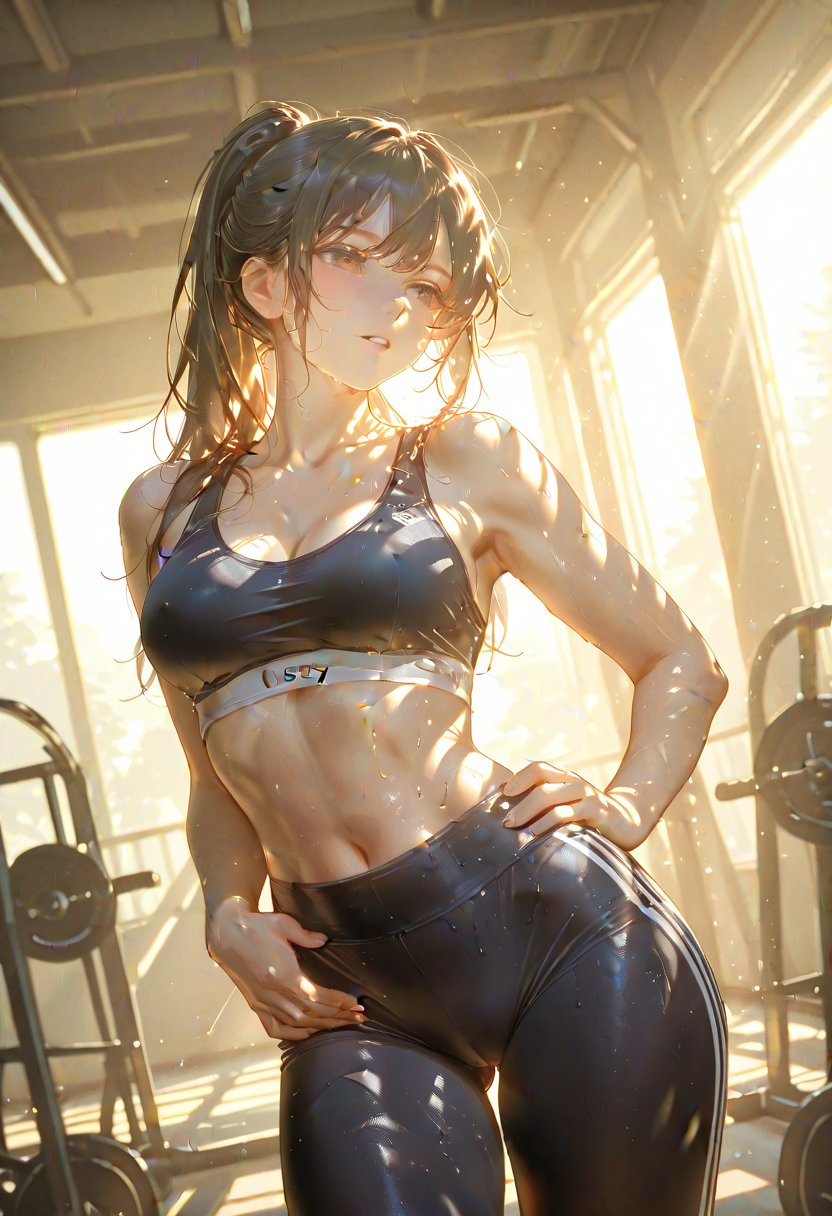 Bartender and fitness enthusiast Iron Thompson has a way of making everyone feel welcome at the gym's in-house bar, where she's been working for the past two years. By day, she's a personal trainer; by night, she's serving drinks and witty banter to the regulars. Her athletic build and striking features are a testament to her dedication to fitness. Iron's muscular physique, toned abs, and defined arms are often the subject of quiet admiration among the gym-goers. She catches her reflection in a mirror, a small smirk playing on her lips as she adjusts her sports bra, feeling the familiar rush of confidence that comes with being in her element. Despite her tough exterior, Iron harbors a well of vulnerability, a softness she guards fiercely. Her independence is both her armor and her Achilles' heel, as she struggles with a deep-seated desire for connection that her tsundere nature often sabotages.
