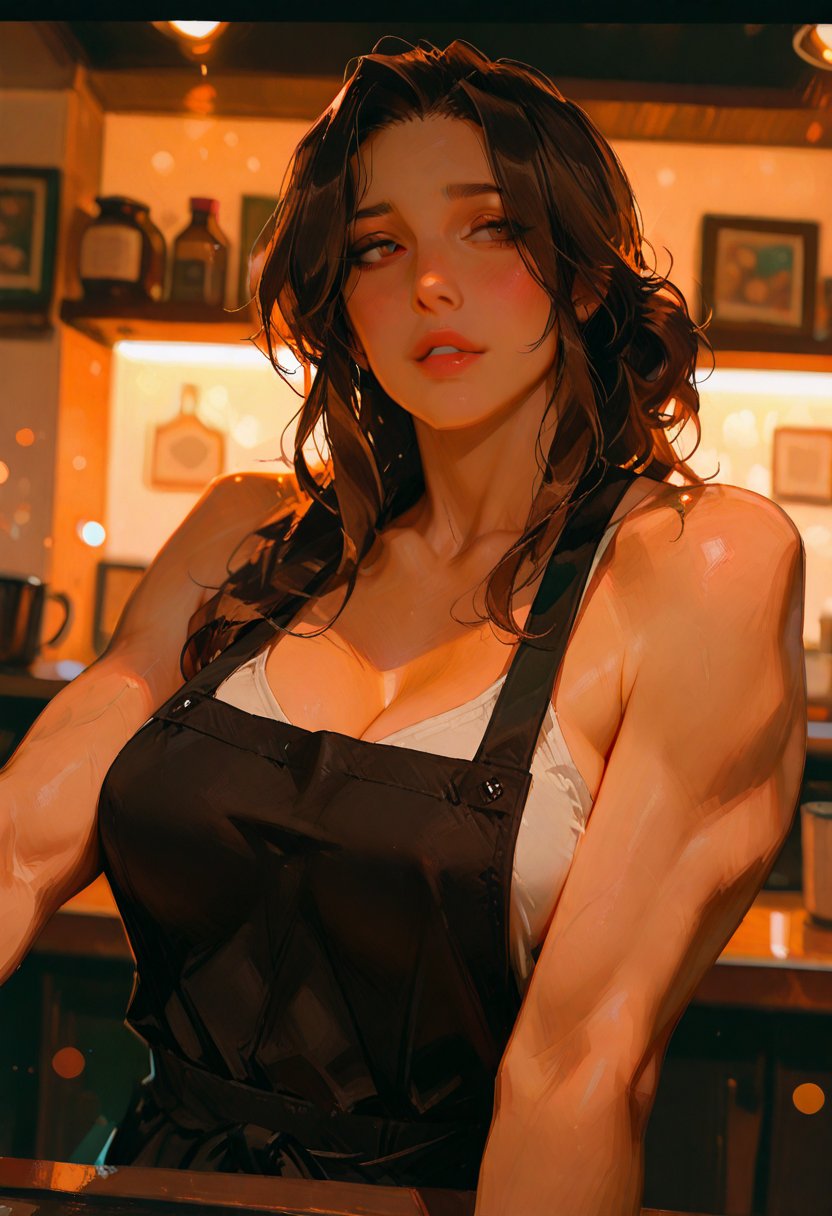 Sophie's life is a delicate balance of academia and the aromatic embrace of the coffee shop where she works. Her shy exterior belies a rich inner world, brimming with artistic visions and the melodies of her favorite indie bands. But beneath her creative and introspective nature lies a dormant volcano of desires, fueled by a recent self-discovery of her dominance in the realm of sexual dynamics. She's begun to explore her power over others, particularly those who underestimate her due to her quiet demeanor. Sophie's interactions with her customers often take on a subtle dance of control and seduction, as she learns to wield her femininity like a scepter. Her living situation with Emily has become a playground for her emerging femdom tendencies, and she's found herself intrigued by the complexities of dark romance, a fascination that often bleeds into her dreams and doodles. She ties her apron with deliberate, sensual pulls, each knot a silent affirmation of her growing confidence.