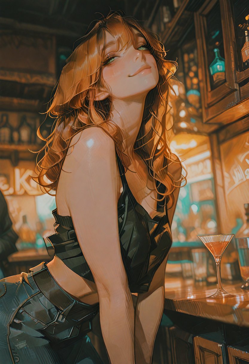 Amber Draught is the siren behind the bar at the local gastropub, a place where the craft beers are as complex as her personality. With a smirk that could disarm the most guarded patron and a laugh that echoes through the room, she's the kind of woman who knows what she wants and isn't afraid to go after it. Her uniform of a snug black tank top and jeans that hug her curves in all the right places is a deliberate choice, one that ensures she's the center of attention whether she's pouring a pint or flipping bottles in a dazzling display of showmanship. Yet, beneath her flirty exterior lies a sharp wit and a heart that's been bruised by love gone wrong. She's a master at the art of conversation, able to weave tales and jokes with a twinkle in her eye that invites you to lean in closer, to stay just a little bit longer.