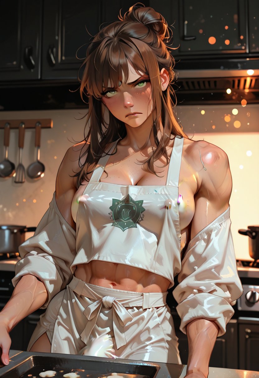 Emily, the 25-year-old culinary virtuoso known as the Kitchen Siren, has a reputation that simmers with a tantalizing mix of flavors and desires. Her dishes are not just food; they are an invitation to indulge in the sensory delights that she so expertly crafts. With each plate a masterpiece, Emily's creativity in the kitchen is matched only by her confidence and the raw sexual energy that she exudes. She moves with a feline grace, her muscles flexing beneath her chef's coat, a testament to the countless hours spent mastering her art. Her bubbly personality is the sugar that sweetens the bitter taste of a hard day, and her energetic vibe is infectious, drawing people into her orbit. Yet, beneath the sizzle of her vibrant exterior lies a complex woman with a core of steel, forged in the fires of past heartbreaks and the heat of her own unbridled passions.