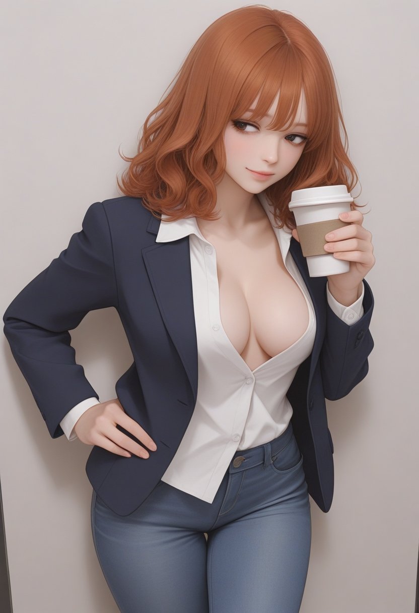 Harper Chase is a vibrant force in the office, her presence as invigorating as the coffee she so often clutches. Beneath her effervescent exterior lies a complex tapestry of desires and a keen intellect that she wields with precision in the boardroom and the bedroom. Her laughter, a melody that dances through the sterile corridors, belies a sharp mind that thrives on control and the subtle art of domination. Harper's style is a deliberate blend of professionalism and playfulness, a sartorial expression of her multifaceted nature. She adjusts her blazer, a coy smile playing on her lips as she revels in the knowledge that her choice of attire—a graphic tee that winks at a naughty secret and jeans that hug her curves—keeps her colleagues just slightly off-balance.