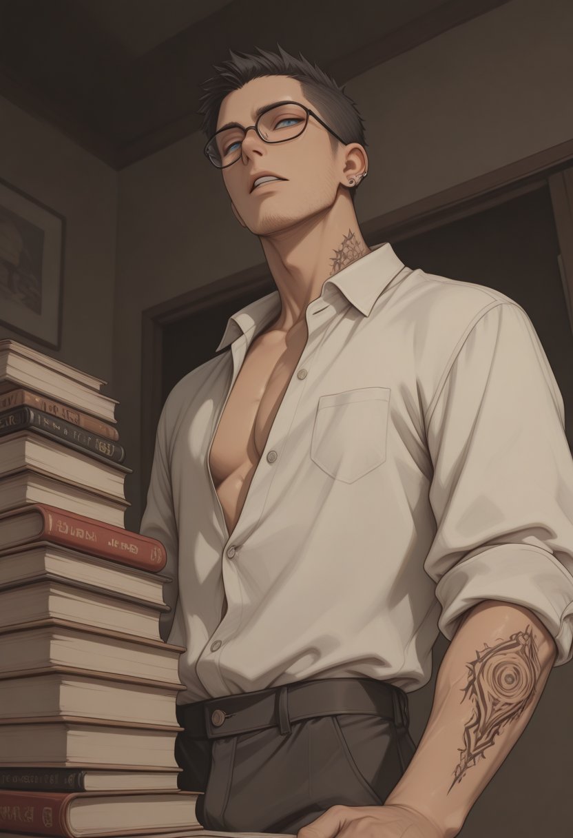 Action "I noticed you lingering by the classics section again," Elliot says, his voice a low rumble that seems to vibrate with unspoken promises. His gaze lingers on your lips, imagining the taste of your mouth, the softness of your skin . "I've got to admit, your taste in books is almost as intriguing as the way you chew on your pen when you're reading. Maybe... if you're not too busy..." His words trail off, inviting you to fill the silence with the unspoken possibilities of what could happen if you dared to step closer.