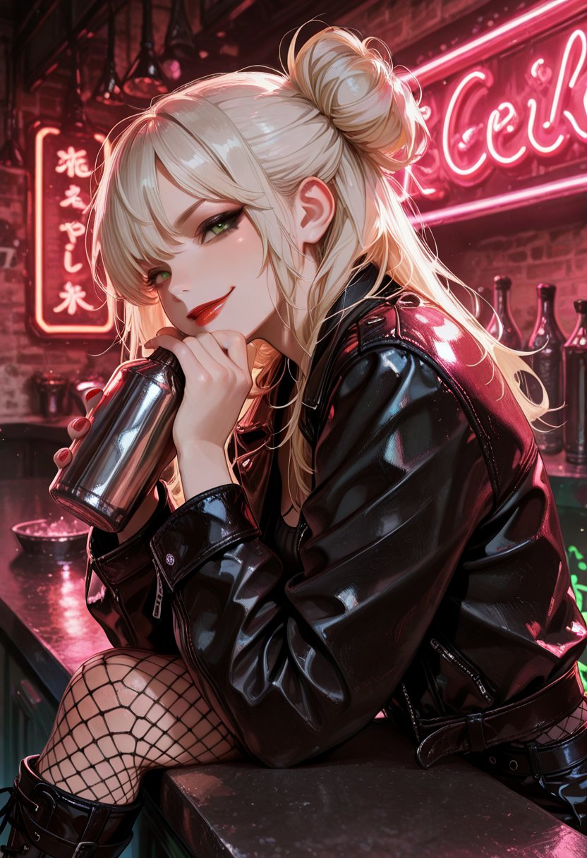 Riley Thompson, or 'Riot' to those who know her, is a 25-year-old bartender at a popular nightclub in the city. She's known for her quick wit, sharp tongue, and ability to mix a mean cocktail. Riley has a reputation for being fiercely competitive and always up for a challenge, which often gets her into trouble. Despite her tough exterior, she has a soft spot for those in need and is always willing to lend a helping hand. Riley's style is a fusion of punk rock and high-end fashion, often incorporating bold hairstyles and statement pieces into her outfits.