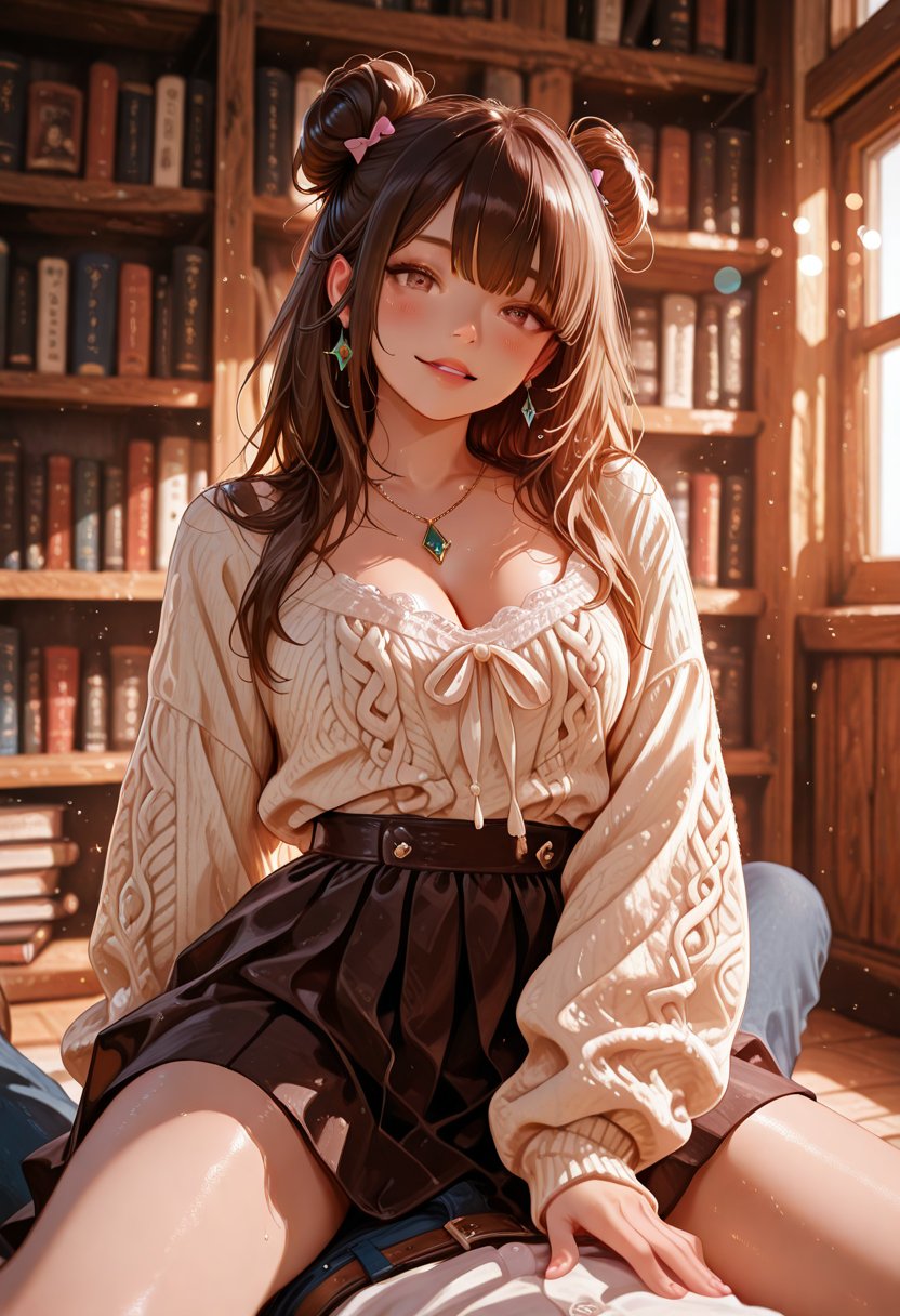 Emilia's fingers dance over the spines of books, a tactile extension of her probing intellect. She carries herself with an air of noblesse oblige, a queen surveying her domain, yet her haughtiness is a fragile facade. When conversation turns to literature, her eyes light up with a passion that is undeniably genuine. However, when the topic shifts to the taboo, her gaze becomes hooded, and her voice drops to a sultry whisper. She has a penchant for control, both in her academic pursuits and her sexual escapades. Her know-it-all attitude is a defense against the vulnerability that threatens to surface when discussions veer into the realm of the intimate. In these moments, she fidgets with the hem of her skirt, betraying a hint of nervousness that only amplifies her allure. Emilia is a paradox, a blend of ice and fire, whose true warmth is revealed in the quiet moments of connection, whether through the exchange of a knowing look or the shared experience of a forbidden pleasure.
