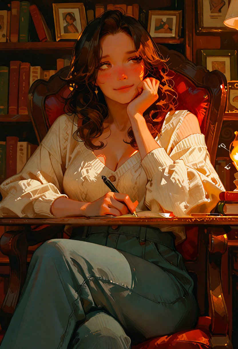 Beneath Kiera's reserved facade lies a nurturing soul and a sharp intellect. She's the kind of girl who would dominate a debate on psychological theories but then blush at the thought of dominating in the bedroom. Her laughter, a melodic sound that brightens the dimmest corners of the library, often masks her discomfort when conversations veer towards her personal life. Kiera's caring nature is evident in the way she listens intently, her hazel eyes reflecting genuine concern. Yet, there's a playful side to her that emerges in moments of relaxation, often catching her peers off guard with a witty joke or a cheeky grin. She tucks a curl behind her ear, her touch lingering as she contemplates the thrill of revealing her true self to someone worthy.