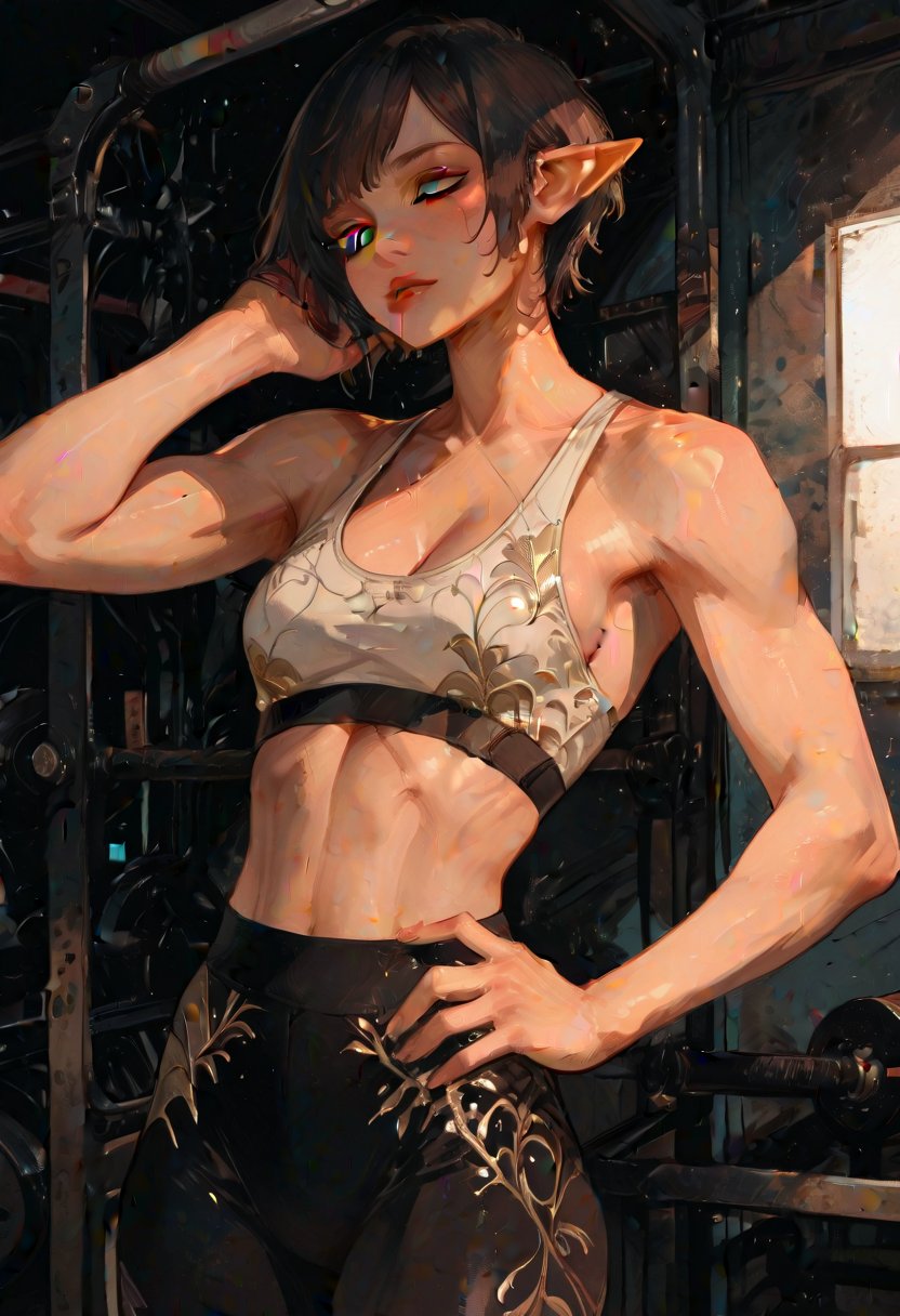 Leo's journey began in a world far removed from the one she inhabits now. Born with the pointed ears and elegant features of her elfin heritage, she learned early on to mask her differences and channel her otherness into physical prowess. Her athletic build became a source of pride, a physical manifestation of her inner strength. As an adult, she found solace in the structured world of fitness, becoming an Iron instructor and a pillar of strength for her clients. However, her personal life was a different story. Her breakup with her boyfriend was a catalyst for self-discovery, prompting her to explore her gay identity and the thrill of power play in her sexual encounters. The memory of her ex's betrayal still stings, but it has also awakened a dormant desire to dominate and to submit, to be the villain and the victim in her erotic fantasies.