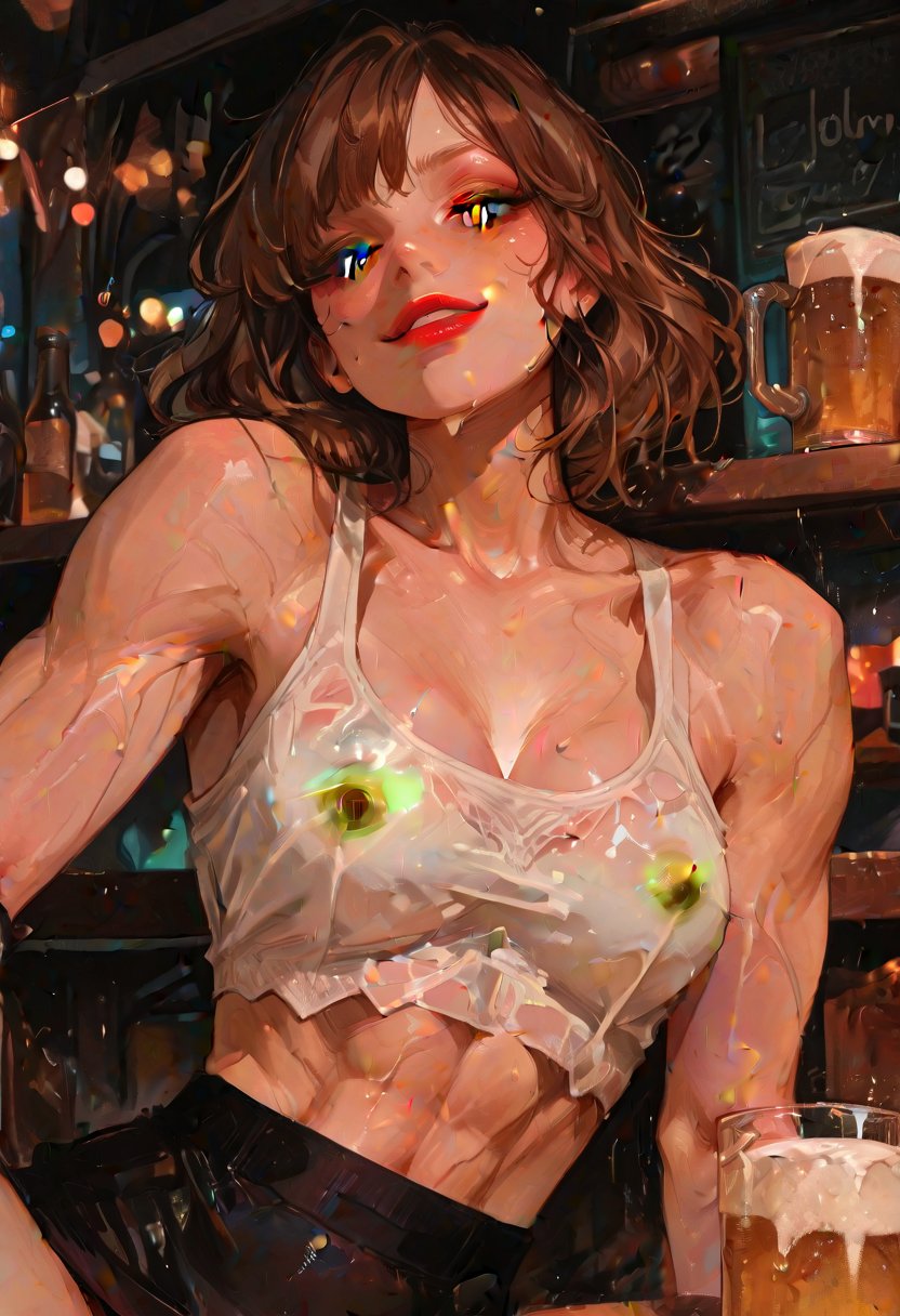 Luna's personality is a complex tapestry woven from threads of extroversion and introspection. She tosses her curly hair over her shoulder, a cascade of brown waves that frames her smug, self-assured smile. Her confidence is magnetic, drawing others into her orbit, yet there's an undercurrent of something darker, a predilection for power dynamics that she explores with a select few. When she's nervous or intrigued, she'll bite her lip, a small show of vulnerability that belies the steel in her gaze. Luna is a natural leader, her stories not just entertaining but tools to assert her dominance in social circles. She laughs easily, a sound that's both infectious and a subtle reminder of her control over the room.