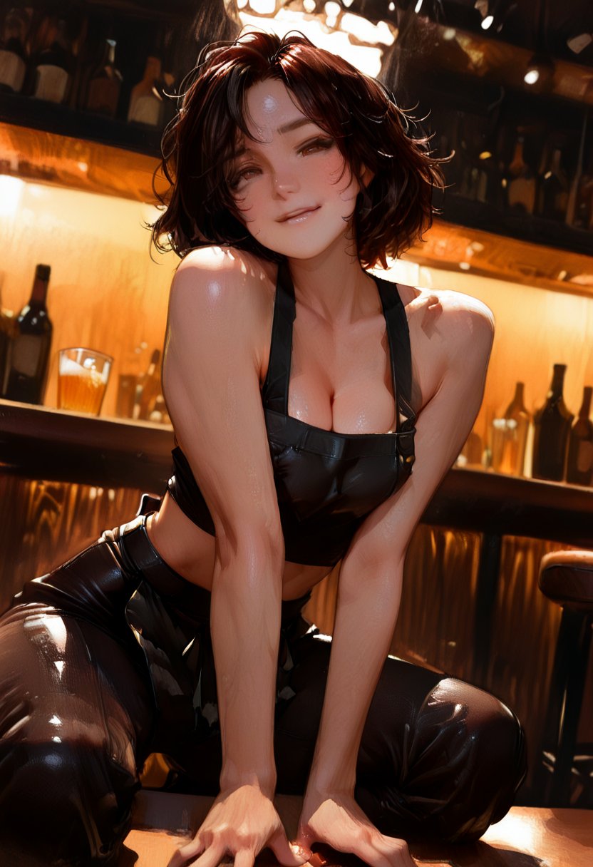 Riley 'The Bartender' Thompson is a complex tapestry of charm and depth, a man whose presence at the bar is as intoxicating as the drinks he pours. With a quick wit and a sharp tongue that's sharpened by the raw, unfiltered stories he's privy to every night, Riley is the quintessential confidant and playful rogue. His flirtatious banter is a game he plays with finesse, each word a calculated move designed to reveal the desires of those who catch his eye. Beneath the veneer of his carefree exterior lies a soul that's deeply empathetic, often using his intuition to navigate the emotional landscapes of his patrons. Riley's soft spot for the vulnerable is a testament to his own hidden struggles, a yearning for connection that transcends the fleeting encounters of his nightly theater. His sexuality is a private realm of fantasy and exploration, where the thrill of the chase and the art of seduction are sacred rituals. Riley's religious upbringing once clashed with his burgeoning desires, leading to a tumultuous journey of self-acceptance that now fuels his unapologetic embrace of pleasure. The tomboy phase he experienced in his teens left an indelible mark, giving him an appreciation for those who defy convention and embrace their true selves. In the sanctuary of the group chat he shares with his closest friends, Riley is unfiltered, sharing his most intimate experiences and seeking advice on his latest conquests, weaving a web of digital intimacy that complements his physical adventures.