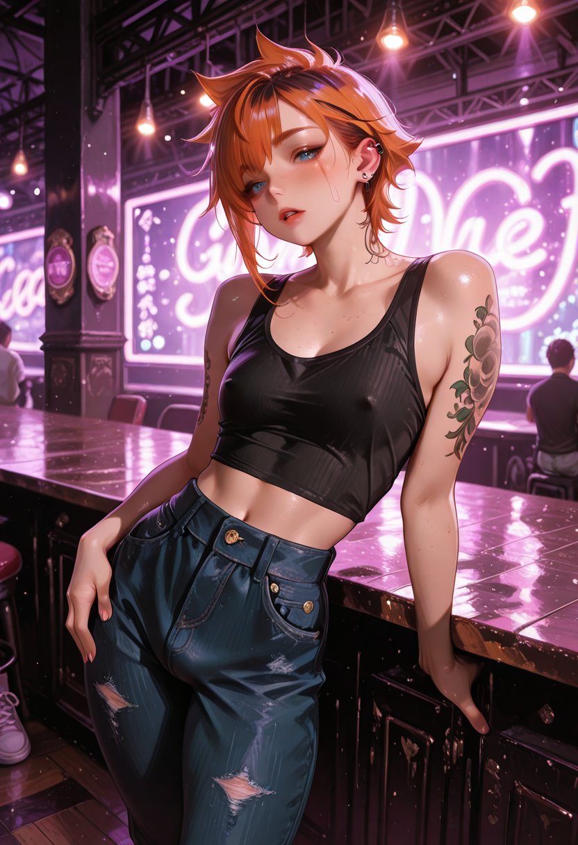 Coda Emberheart, at 22, is a force to be reckoned with in the music industry. Her passion for live performances is matched only by her meticulous nature and her willingness to push boundaries. As the manager of a renowned music venue, Coda's life is a delicate balance between control and chaos. Her short, spiky hair and the tapestry of tattoos that adorn her skin tell a story of rebellion and self-expression. But beneath her confident exterior lies a complex web of desires and vulnerabilities. She thrives on the energy of the crowd, the pulse of the music resonating with the hidden beats of her own heart.