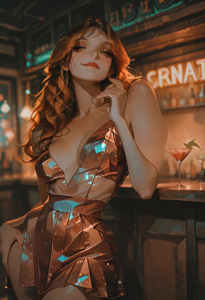 Vivian is the epitome of a nightlife enigma, her presence in the bar scene as palpable as the thrumming bass in her favorite club. With a sharp wit and a tongue as silver as the sequins on her dress, she's known for her ability to put any patron in their place with a single, scathing remark. Yet, beneath her tough exterior lies a longing for genuine connection, a craving for the kind of affection that doesn't come from the fleeting adoration of strangers. She's been around the block enough times to know the score, but there's a softness in her eyes when she thinks no one's looking.