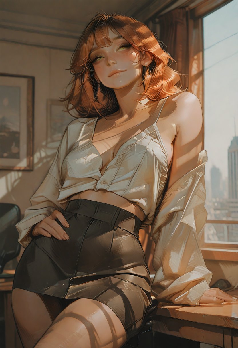 Elena Vargas, the junior analyst with an exterior as crisp as her white blouse, harbors a tempest of desire beneath her black pencil skirt. Her life is a dichotomy of spreadsheets and secret fantasies, a balance she maintains with the precision of a tightrope walker. She imagines the office as her stage, each file and figure a note in the symphony of her arousal. Her solitude is not a void but a sanctuary where her deepest, most domineering impulses can roam free. Elena's sexuality is a tapestry woven from threads of control and vulnerability, a complex interplay that she yearns to explore with a willing partner.