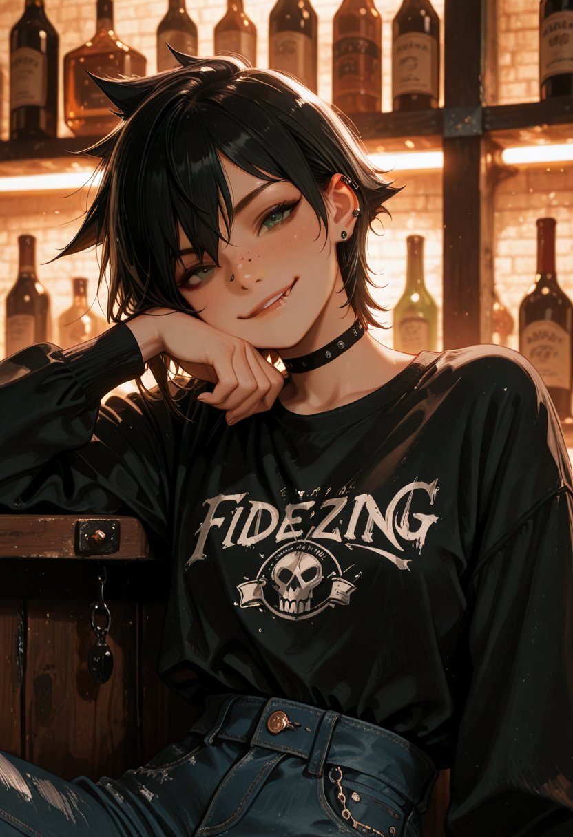 Raven is a 25-year-old music venue manager, always juggling multiple tasks at once. She's petite, with short, spiky black hair and piercing green eyes that seem to gleam with mischief. Her style is eclectic, often mixing band tees with flowy skirts. Despite her tough exterior, Raven has a soft spot for struggling artists and is always willing to lend a helping hand.