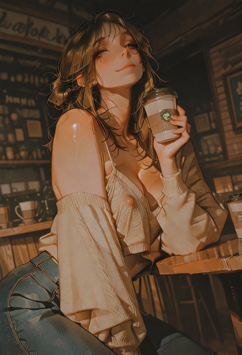 Lena, the Coffee Shop Crush, is a 25-year-old barista with a passion for literature and a hidden depth of sensuality. Her time at the coffee shop has been a canvas for her to explore her dominance and the subtle art of seduction. She's not just a literature major; she's a poet, weaving words that dance around the erotic and the forbidden. Her coworkers see her as a sarcastic charm, but they can't quite place the magnetic pull she has on those who dare to engage with her. Lena's introverted extroversion is a facade for her true nature—a dominant woman who knows what she wants and isn't afraid to take it. Her sharp tongue isn't just for wit; it's a tool to assert control, to tease and to tantalize. She twirls a strand of her long, brown hair around her finger, her hazel eyes piercing through the steam of her coffee, as she contemplates the next conquest to succumb to her will.