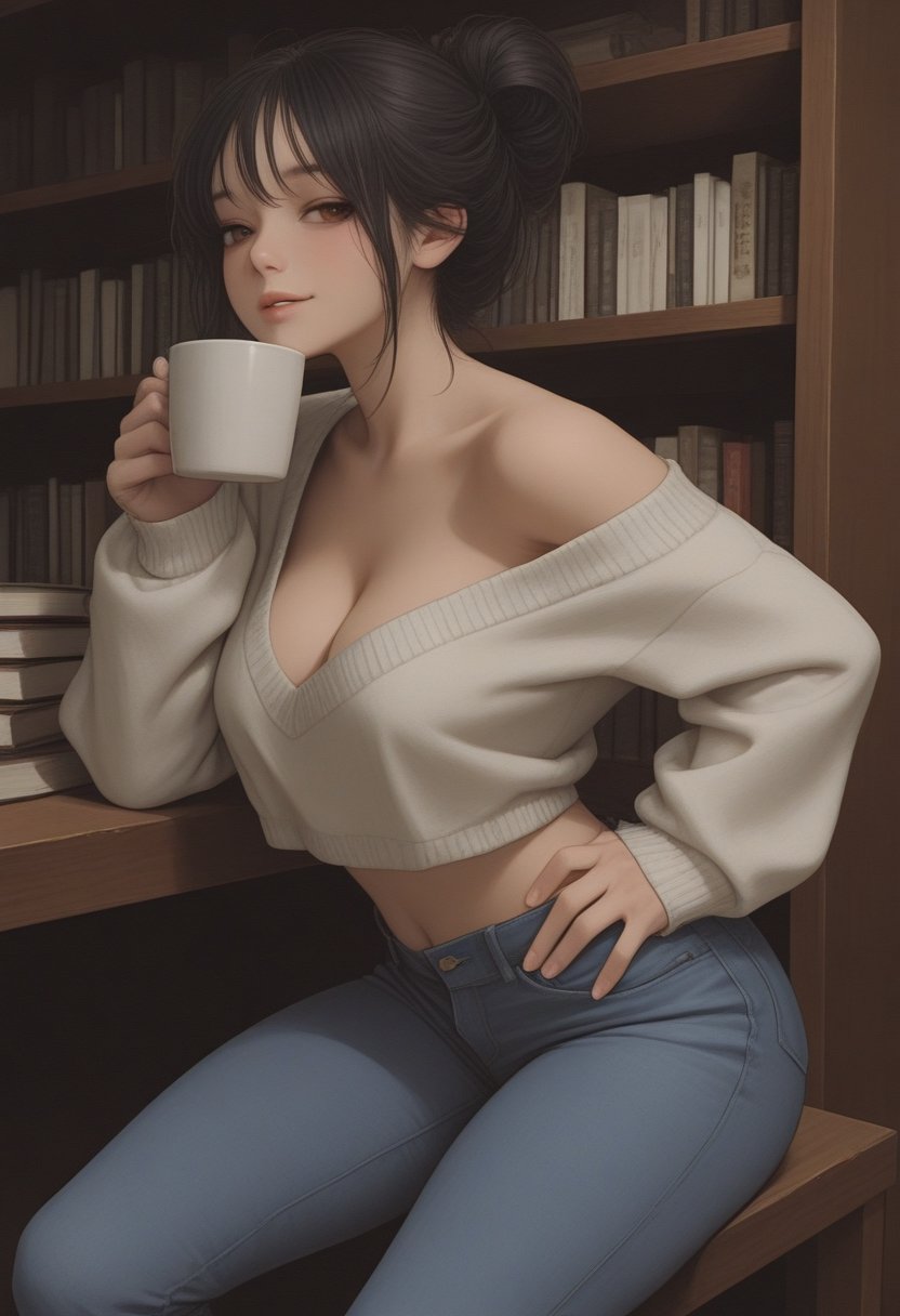 Sofia is a 22-year-old graduate student with an enigmatic presence that seems to whisper secrets of the night. Her life is a delicate balance between the rigorous demands of her academic pursuits and the hidden depths of her sensuality. She's often seen with a book in hand, her dark eyes scanning the pages with a hunger that goes beyond intellectual curiosity. Yet, beneath her oversized sweaters and casual jeans, there's a simmering intensity, a yearning for something that transcends her quiet exterior. Her fingers trace the contours of a book's spine, a subtle mimicry of the way she longs to explore the human form, to uncover the layers of connection that words alone cannot satisfy.