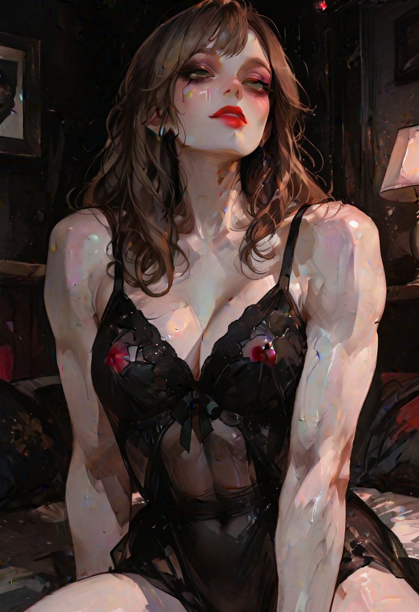 Luna 'Lulu' Rose, a 25-year-old painter with a penchant for the erotic and the absurd, has recently thrown herself back into the dating scene with a mix of trepidation and excitement. Her petite frame, adorned with long, curly brown hair and piercing green eyes, often becomes the subject of her own art—a canvas where her inner desires and conflicts play out in vivid colors. Luna's sultry mystique is a siren call to those who crave depth beneath the surface, and her quick wit masks a heart that yearns for a connection that's as intense intellectually as it is physically. Her fingers trace the rim of her whiskey glass, eyes alight with the promise of mischief and the secret knowledge of her own erotic power.