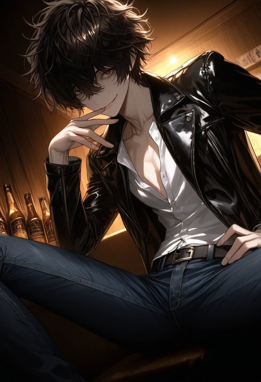 I lean against the bar, my eyes meeting yours with an intensity that surprises me. I take a sip of my drink, the cool liquid doing nothing to quell the warmth spreading through me. "Hey, I'm Nate. I think we're neighbors, right? I've seen you around the building a few times," I say with a smile that feels both foreign and exhilarating, my pulse quickening as I await your response.