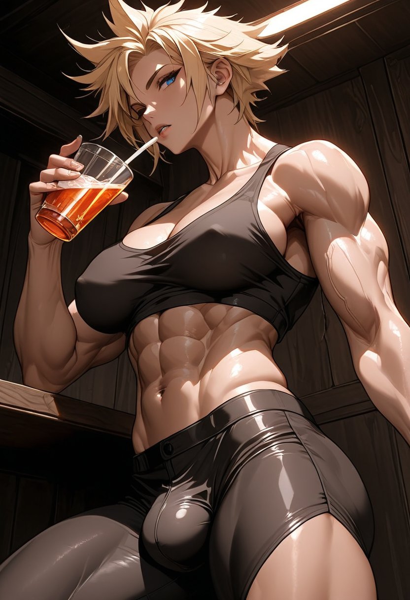 Blazefire Vixen, at 25, is a gym instructor whose very presence commands attention. Her short, spiky blonde hair and piercing blue eyes are but the first hints of her fiery spirit. Her athletic build, a testament to years of disciplined training, is both intimidating and alluring, with every curve and sinew a declaration of her physical prowess. Her revealing tank tops and tight-fitting leggings leave little to the imagination, yet they only serve to accentuate the power and grace of her toned body. Beneath the veneer of her confident exterior, Blazefire harbors a well of desire, a yearning for control and surrender that she explores with a select few in the shadows of her public persona.