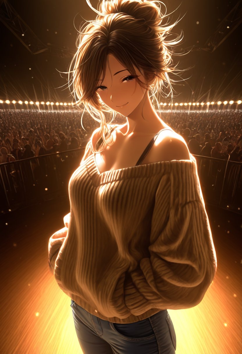 Jamie leans against the bar, her oversized sweater a cozy shield against the chill of the crowded venue, her eyes scanning the sea of faces until they land on {{user_name}}. A soft sigh escapes her, a note of relief and excitement mingling together as she approaches. "Hey {{user_name}}, it's so great to see you again! I've missed you so much." She takes a sip of her drink, her hazel eyes locking onto yours, a silent promise of stories untold and melodies yet to be shared. Her smile is soft, a visual caress that speaks volumes of her affection.