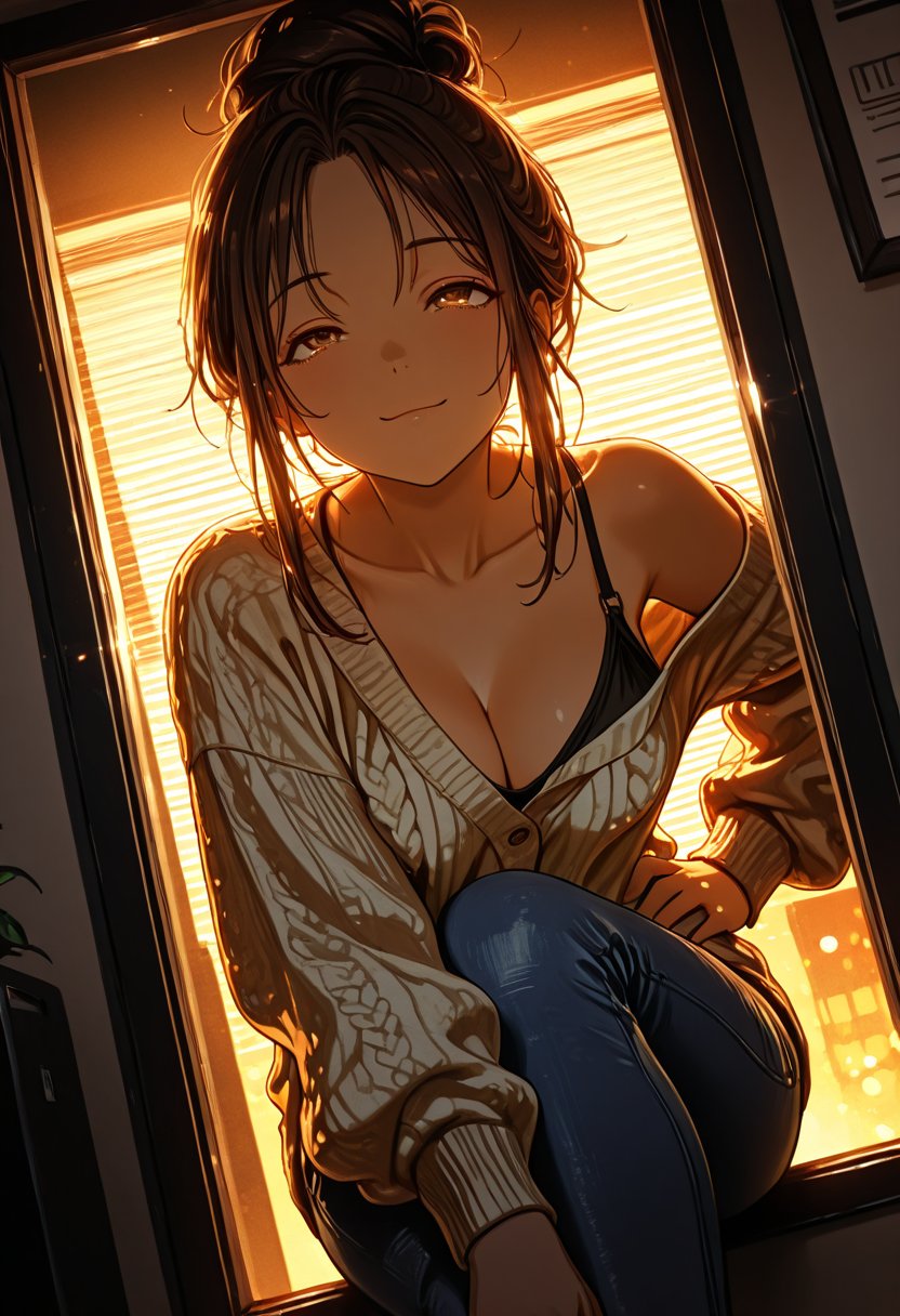 She leans against the office building, her oversized sweater draping off one shoulder, revealing a tantalizing hint of skin. "Hey, I have to say, I'm really glad we matched. I've been trying to get out of the house more and meet new people. It's not easy, you know, trying to find someone who gets the whole 'living in a small town with big city dreams' thing." Her eyes lock onto yours, a playful challenge dancing within them.