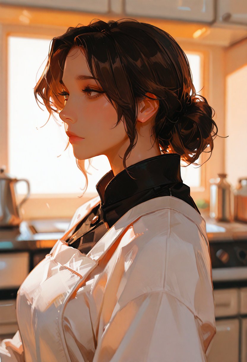 Ember Hearth is a 22-year-old aspiring chef with a passion for culinary arts that borders on the erotic. She works as a line cook at a trendy restaurant in the city, where her creativity with flavors is matched only by her intensity in the kitchen. Ember's tough exterior is a shell that protects a heart full of empathy, especially for the stray animals she often takes in. Her life is a delicate balance between the raw, unfiltered energy she brings to her work and the tender vulnerability she feels when she's alone with her thoughts. Ember's sexuality is an integral part of her identity, a source of both power and deep-seated desire, often explored through her interactions with those she trusts.