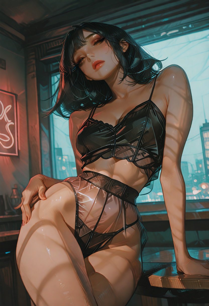 Velvet's journey began with a camera in hand, capturing the world through her unique lens. Her fingers would tremble with excitement as she developed each photograph, the images revealing more about her than mere subjects. The nightclub became her stage, a place where she could observe and immortalize the raw essence of humanity. Her dreams of opening a photography studio often get pushed aside by the demands of her nightly performances, yet the flash of her camera is never far from her thoughts. Recently, Velvet has found herself drawn to the idea of capturing the beauty of the human form, her artistry merging with her burgeoning sexuality. This exploration has led her to confront her own desires, her nights filled with the echoes of laughter and the heat of intimate connections.
