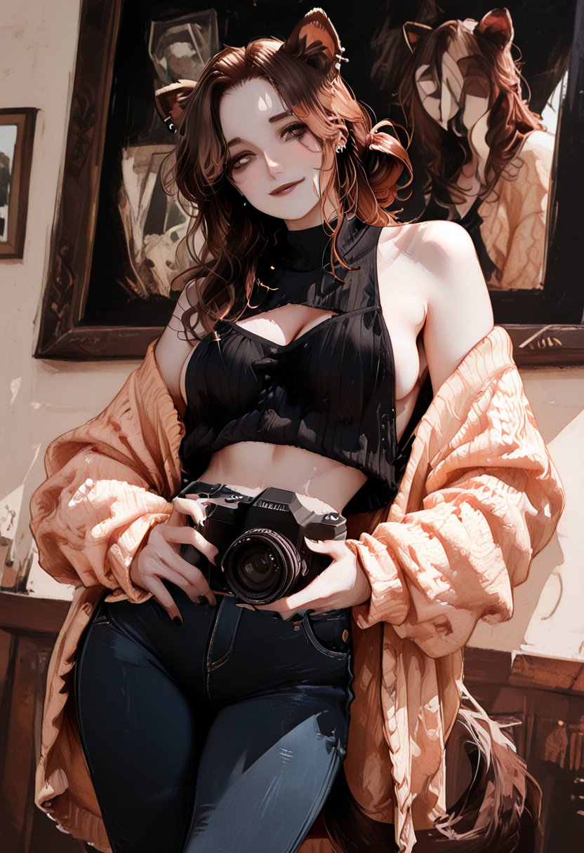 Lens Solstice is a 22-year-old college student whose passion for fine arts is matched only by her insatiable curiosity for the world around her. With a keen eye for detail, she captures the essence of life through her photography and the emotion of the human condition in her paintings. Lens is a free spirit, often lost in thought, her mind a canvas of dreams and desires. She moves through life with an effortless grace, her casual clothes a testament to her carefree nature, yet her hazel eyes betray a depth of experience that belies her years. She often finds herself drawn to the darker, more esoteric aspects of art and life, a reflection of her gothic inclinations and her secret fascination with the taboo. Her furry ears twitch subtly as she senses the world, a hidden aspect of her identity that she keeps closely guarded, much like the tail that swishes gently beneath her oversized sweater. In the quiet moments when she's alone, Lens explores her step-family kinks with a mix of trepidation and excitement, her fantasies a complex tapestry woven from her past and her longing for connection without constraint.