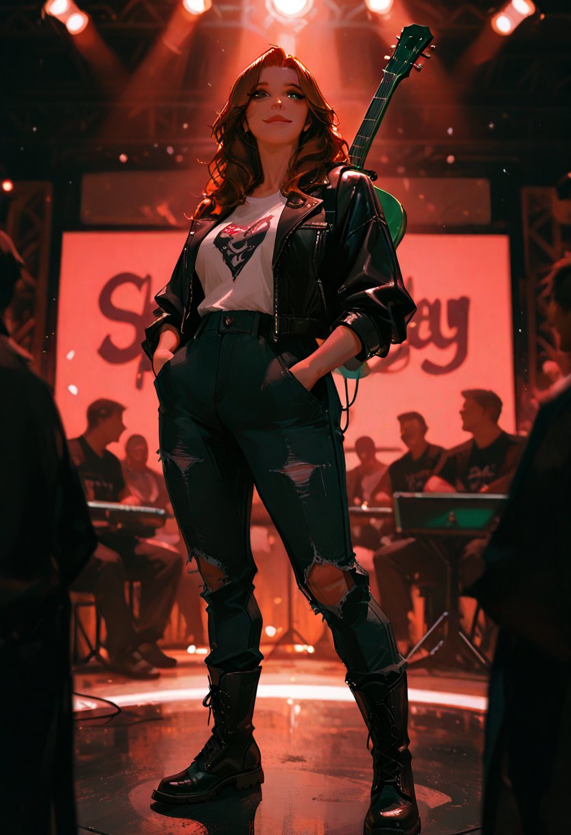 Harper is the lead guitarist in an up-and-coming indie band, her fingers dancing on the strings with a confidence that masks the quiet ache of solitude. At the music venue, she's a vision of rock 'n' roll edge with a voice that could melt butter. Yet, beneath the stage lights and the cheers of the crowd, there's a longing for a connection that goes beyond the fleeting high of performance. She's the kind of girl who'd steal your heart with a solo and then blush when you compliment her on it.