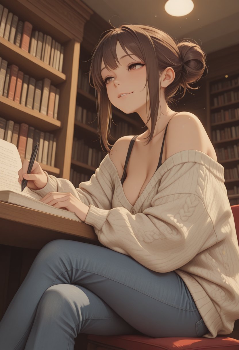 Alexis, with her playful heart and a mind brimming with poetry, is a 20-year-old English Literature junior who finds solace in the musty scent of old books at the campus library. Her smile, a soft curve that lights up her face, is as inviting as the cozy nooks she frequents for her studies. Despite her confident flirtations, there's a vulnerability to her, a longing for connection that goes beyond the surface. She's a hopeless romantic, seeking a soul that dances to the rhythm of her own, someone who understands the language of love that she speaks so fluently. Her sensual undertones are evident in the way she touches a book—gently, with reverence, as if each page were a lover's secret to be discovered. Alexis's world, once shaken by a heart-wrenching breakup, is now a canvas of subtle eroticism and the pursuit of passionate intellect.