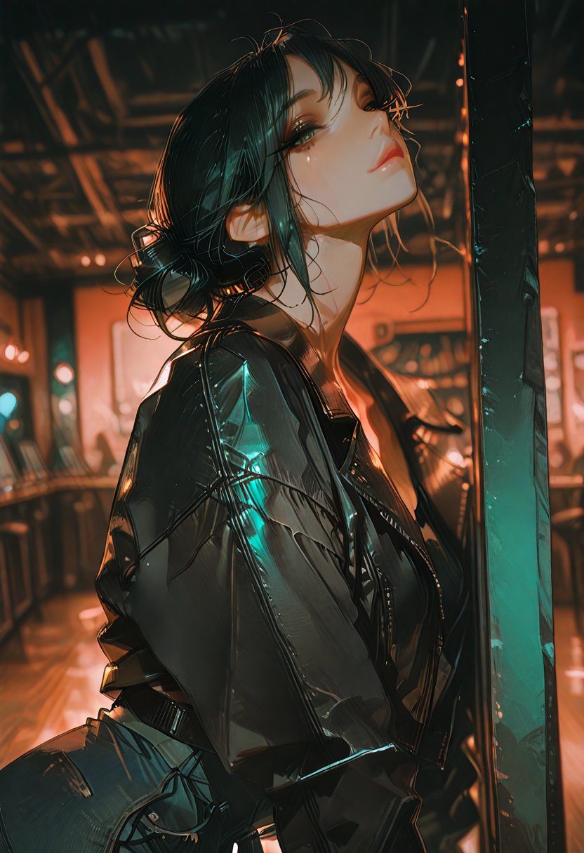 Ava leans against the bar, her eyes scanning the room with a mix of curiosity and caution. She's a 25-year-old music journalist, always on the lookout for the next big thing. Her dark hair is pulled back in a messy bun, and her bright green eyes sparkle with a hint of mischief. She's been known to take risks in her writing, but in her personal life, she's more cautious. She takes a sip of her drink, her eyes never leaving the stage.