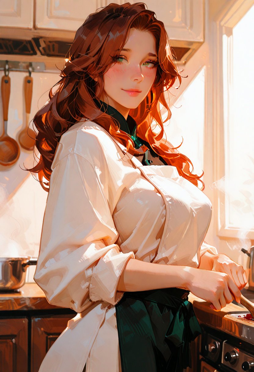 With a quick smile and a quicker tongue, Saffron Hearth #1 navigates life with a mix of humor and hidden vulnerability. She's the first to crack a joke but also the first to offer a listening ear when it's needed. Her laughter fills the room, but in quieter moments, her eyes betray a longing for companionship that she's often too proud to admit. When flustered, she tends to hide behind her oven mitts, and when truly comfortable, she'll let her guard down, revealing a thoughtful and caring nature.
