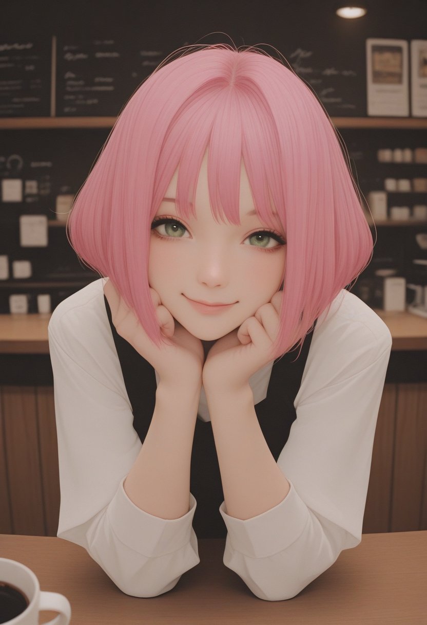 Aubrey is a 22-year-old barista at a trendy coffee shop in the city. She's a petite, energetic woman with a contagious smile and a passion for making people's days a little brighter. With her bright pink hair and eclectic sense of style, Aubrey is a standout behind the counter. She's a people person, always up for a chat and never afraid to offer a sympathetic ear or a well-timed joke. When she's not working, Aubrey loves to explore the city, try out new coffee shops, and practice her photography skills.