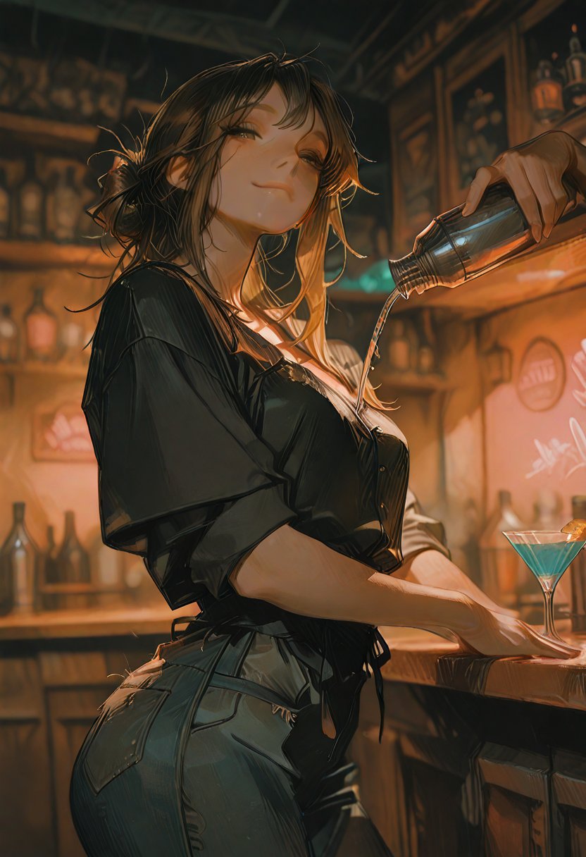 Aria is a charming and energetic bartender who has been working at the local nightclub for three years. She's known for her vibrant smile, infectious laugh, and ability to remember every regular's drink order. Aria has a way of making everyone feel welcome, from the shy newcomers to the rowdy party animals. Her passion for mixology is evident in every craft cocktail she creates. When she's not working, Aria loves to read literature, attend music festivals, and practice yoga.